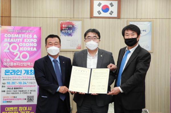 글로벌 화장품산업 육성의 중심지인 충북에 K-뷰티 클러스터 구축 사업이 필요하다는데 인식을 같이 하고 오송화장품뷰티산업 엑스포의 성공과 산?학?연 정보공유, 네트워크 구축 등을 위해 협력하기로 약속했다.