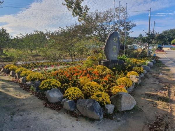 먼저 진원면 산동리 작동마을회관 옆에 조성된 가을정원이 눈길을 끈다. 작동마을 주민자치발전위원회 회원들이 주축이 되어 황금사철과 국화, 메리골드, 수경식물 등을 식재했다. 또 물레방아와 연못통 등도 설치해 마을풍경과 조화를 이뤘다.