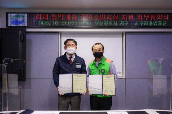 부산광역시 서구와 서구자율방재단은 지난 21일 화재 취약계층 주택용 소방시설 지원을 위한 업무협약을 체결하였다.