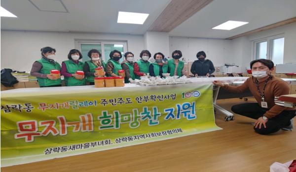 부산시 사상구 삼락동 새마을부녀회는 지난 21일 코로나19로 인해 식사해결에 어려움을 겪고 있는 1인 노인·청장년·장애인 등 25가구에 「무지개 희망찬(반찬지원)」사업을 추진하였다.