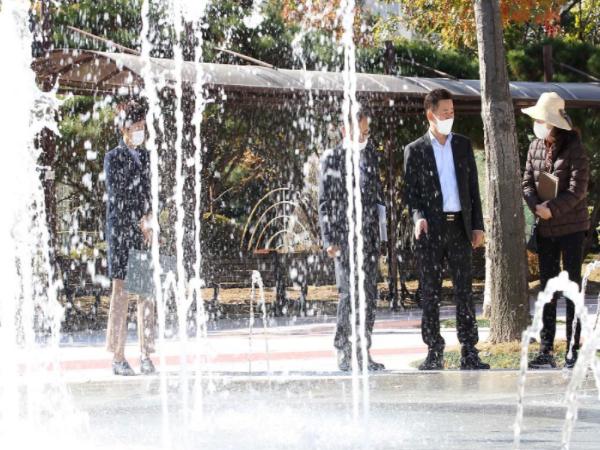 인천시 동구는 동구 주민의 대표 쉼터인 송현근린공원 광장 중앙 바닥분수 설치와 노후 산책로 정비 공사를 완료했다고 23일 밝혔다.