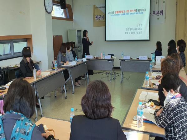 토론자로는 최영희 창원시의회 의원, 김혜정 부산여성가족개발원 연구위원, 정지안 청년문화기획단 한여름 공동대표, 김혜옥 창원시 양성평등 전문관이 참여했다.