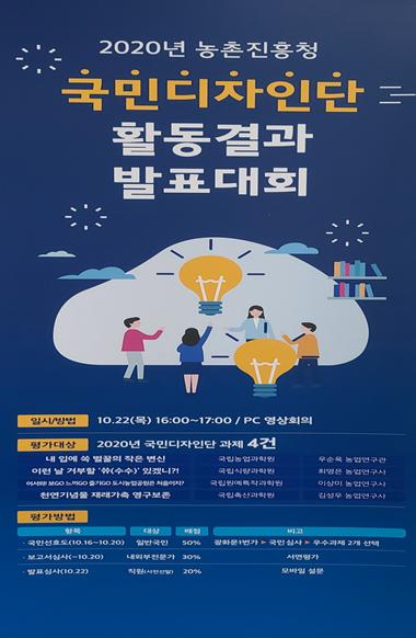 농촌진흥청은 정책을 국민들과 함께 설계하는 국민디자인단의 성과를 공유하기 위해 22일 ‘2020년 국민디자인단 성과 공유대회’를 개최했다.