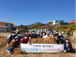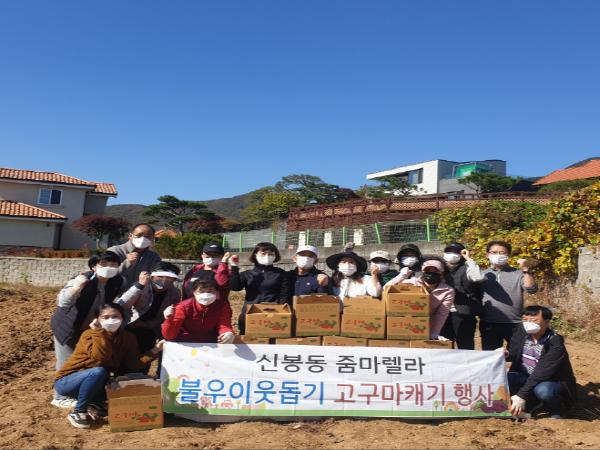 이날 축구단원 10여명과 용인시의회 이창식 의원, 신봉동 직원 등 참여자들은 지난 5월부터 정성들여 가꾼 고구마 26상자(5kg/상자)를 수확했다.