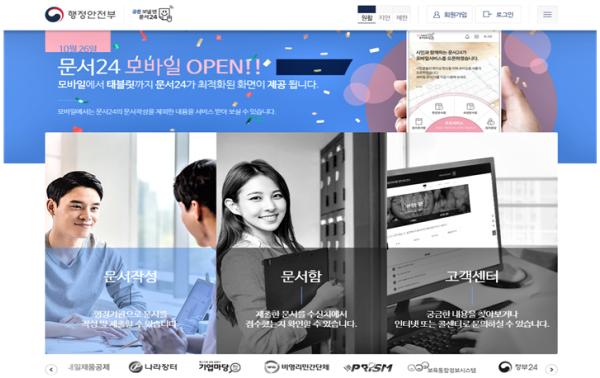 행정안전부는 모바일 기기로 공문서 처리내용을 확인할 수 있는 ’모바일 문서24‘(m.open.gdoc.go.kr) 서비스를 10월 26일에 개통하고, 기존 ’문서24‘(open.gdoc.go.kr)에 ‘웹 서식‘ 기능을 도입한다고 밝혔다.