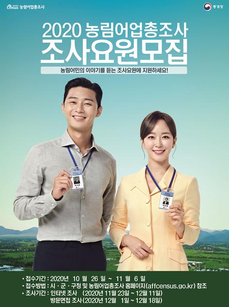 인천광역시가 12월 1일부터 18일까지 실시되는 ‘2020 농림어업총조사의 현장조사를 담당할 조사요원을 모집한다.