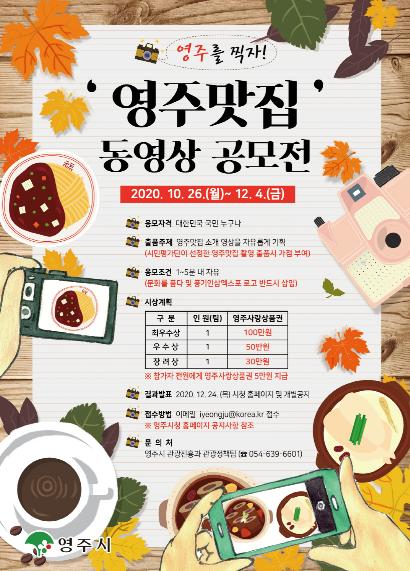 경북 영주시는 오는 12월 4일까지 ‘영주맛집’ 동영상 공모전을 개최한다.