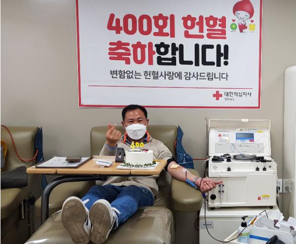 코로나19 여파로 원활한 혈액 수급이 어려워진 가운데 전주시 공무원들이 헌혈을 위해 소매를 걷었다. 덕진구청의 황옥 주무관은 400번째 헌혈을 했다.