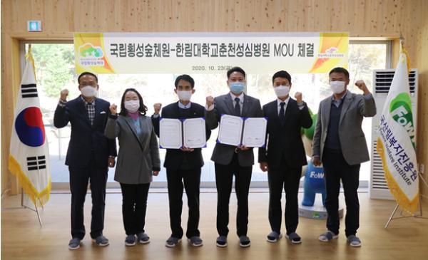 산림청 한국산림복지진흥원(원장 이창재)은 국립횡성숲체원(원장 홍성현)이 국민건강 증진을 위해 한림대학교춘천성심병원과 업무협약을 지난 23일 체결했다고 밝혔다.