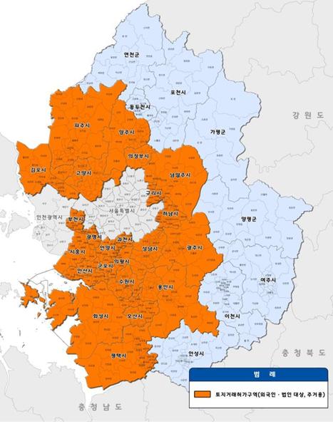경기도가 도내 23개 시·군 전역을 외국인·법인 토지거래허가구역으로 지정했다. 단, 주택이 포함된 토지를 취득하는 경우만 해당한다. 이를 통해 도는 최근 부동산 시장의 큰손으로 부상한 외국인 및 법인의 투기목적 부동산 거래를 차단하겠다는 방침이다.