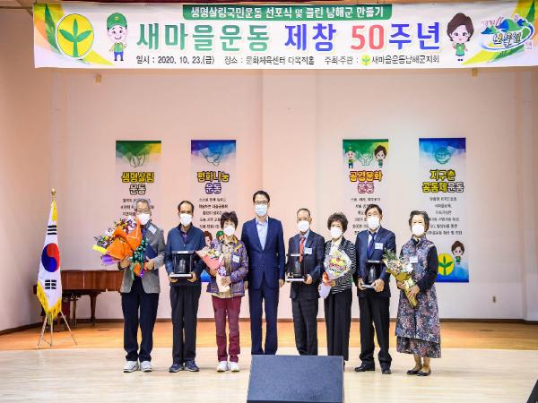 새마을운동 남해군지회(회장 정철)는 지난 23일 남해군 문화센터 다목적홀에서 남·여 새마을지도자와 초청내빈 등 100여명이 참석한 가운데 새마을운동제창 50주년 ‘생명살림국민운동 선포식 및 클린 남해군 만들기’ 대회를 개최했다.