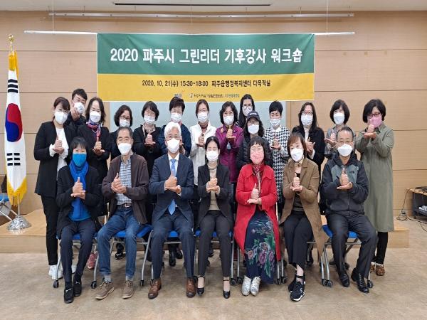 파주시지속가능발전협의회는 지난 21일 파주읍행정복지센터에서 ‘포스트 코로나19, 비대면 기후변화교육 방안’을 주제로 2020 파주시그린리더 기후강사 워크숍을 개최했다.