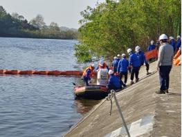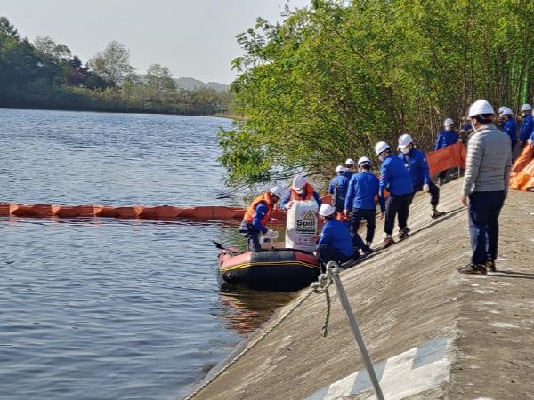이날 훈련은 상황보고 및 전파 단계에서 사고 발생 직후 신속히 현장 상황 전파, 초동방제 단계에서는 오일 유출 설비 정지 확인 및 수계 유입 차단, 현장출동 및 사고 대응 단계에서는 오일펜스 설치 및 유류 흡착 제거, 유출 설비 교체 작업 완료, 후속조치 단계에서는 오염 확산 여부 조사 및 시료 채취, 방제작업 완료 상황 보고를 끝으로 마무리됐다.