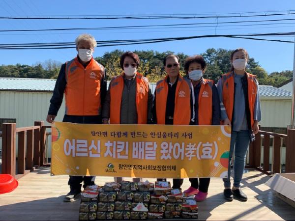 함안면 지역사회보장협의체(위원장 임명구)는 지난 23일 한센질환으로 소외된 어르신 40세대를 대상으로 어르신 간식지원 사업 ‘어르신 치킨 배달 왔어孝(효)’를 실시했다.