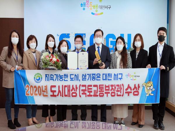 대전 서구는 26일 국토교통부가 주최하고 대한국토·도시계획학회가 주관한 2020년 대한민국 도시대상에서 도시사회부문 1위로 국토교통부장관상을 받았다.