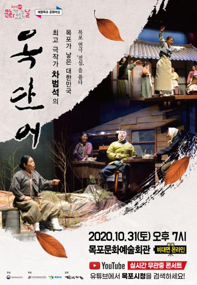 목포시는 10월 문화가 있는 날을 맞아 오는 31일 오후 7시에 차범석의 ‘옥단어’공연을 유튜브 목포시청 채널을 통해 생중계한다.