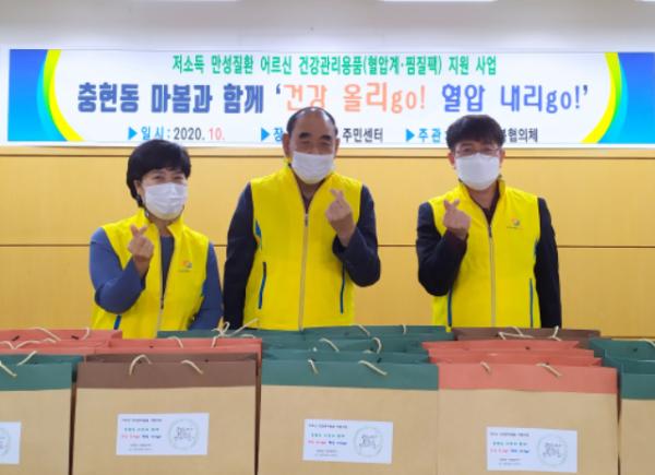협의체는 국민기초생활보장 생계수급 어르신들 중 고혈압 등으로 지속적 관리가 꼭 필요한 어르신 20명에게 가정용 혈압계와 찜질팩을 지원했다.