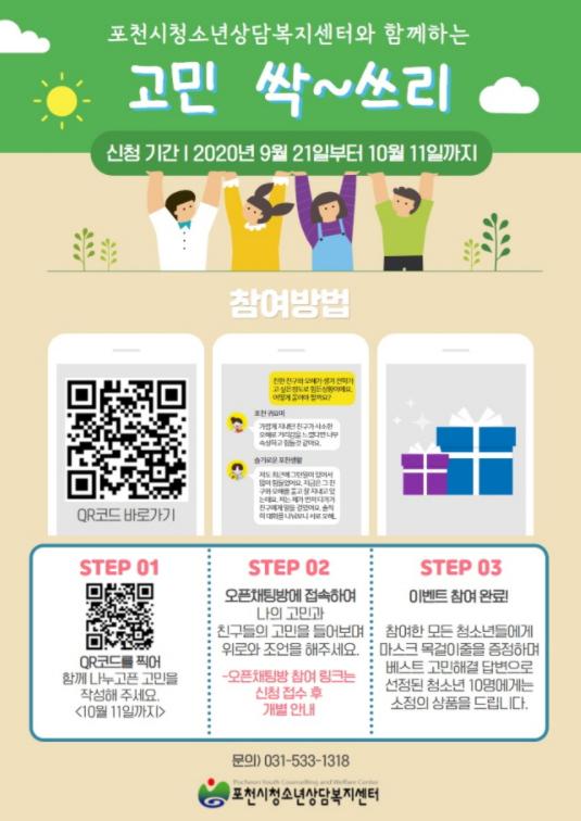 포천시청소년상담복지센터는 지난 24일 고민 싹~쓰리 온라인 아웃리치를 실시했다고 밝혔다.