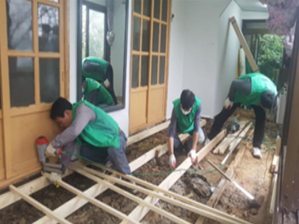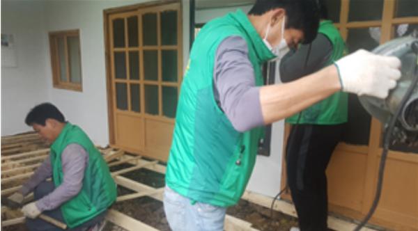 이날 봉사활동은 지역 내 주거환경이 취약한 1가구를 대상으로 진행됐으며 새마을지도자협의회 회원들의 재능기부를 통해 내려앉은 마루를 보수했다.