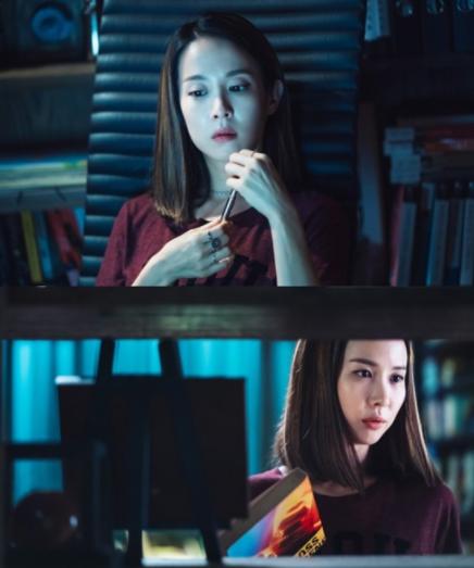 오직 노트북 불빛만이 여주를 비추고 있는 가운데, 예사롭지 않은 표정으로 생각에 잠긴 그녀의 모습은 ‘미스터리 여왕’의 면모를 고스란히 보여준다. 과연 그녀의 머릿속에는 어떤 이야기들이 펼쳐지고 있을지 궁금증을 끌어올린다.