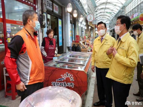 이어 양 지사는 광천전통시장으로 이동해 소상공인들과 만나 피해 현황을 듣고, 방역 상황을 살폈다.