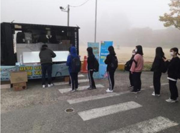 부여군시설관리공단 청소년상담복지센터는 코로나19로 인해 청소년들의 우울, 불안, 걱정 등 부정적 정서 경험이 증가하고 최근 시험 준비 등으로 학업 스트레스가 많은 청소년들을 격려하며 응원하기 위해 등교길 아침 빵과 따뜻한 음료를 제공하는 행사를 가졌다.