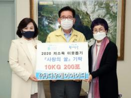 동대문구는 26일 오후 3시 20분 ㈜다우케이아이디(대표 김동신)가 동대문구청을 방문해 쌀 2000kg(환가액 6백만 원 상당)을 어려운 이웃을 위해 기탁했다고 밝혔다.