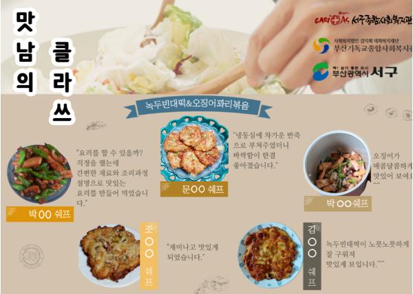 부산 서구가 저소득 중·장년 1인 가구 남성의 고독사 예방을 위해 부산기독교종합사회복지관·서구종합사회복지관과 함께 민관협력 사업으로 추진 중인 `살림의 달인-맛남의 클라쓰'가 좋은 반응을 얻고 있다.