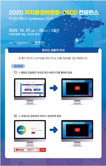 대통령 소속 자치분권위원회는 경제협력개발기구(OECD)와 자치분권 강화와 책임성 제고를 위해 지속적으로 협력하기로 합의하고, 10.27일부터 10.28일까지 더케이호텔에서「2020 자치분권위원회-OECD 컨퍼런스」를 개최한다고 밝혔다.
