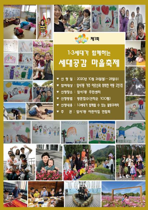 ‘세대공감 마을축제’는 코로나19 속 모든 세대가 안전하게 축제를 즐길 수 있도록 비대면 방식인 사진?영상 전시회로 개최된다.