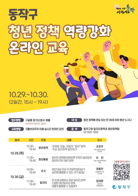 동작구가 동작구 청년정책 거버넌스 활성화 지원사업의 일환으로 ‘청년 정책역량 강화’ 교육을 실시한다고 27일 밝혔다.