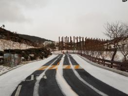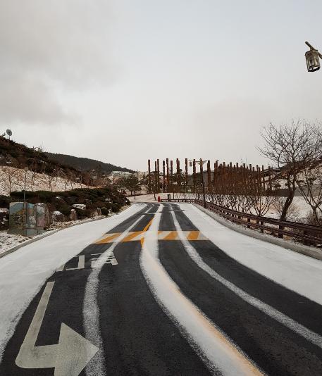 군은 도로결빙으로 인한 관광객들의 안전(교통)사고 예방과 관광불편을 최소화하기 위해 한방휴양림 내 경사도로 약 110m 구간에 열선도로를 설치했다.