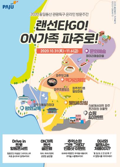 파주시는 10월 31일 밤부터 오는 11월 6일까지 일주일동안 온라인 비대면 통일동산 관광특구 방문주간을 운영한다고 밝혔다.