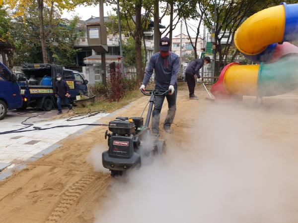 이와 함께 어린이놀이터 60곳에서는 모래와 탄성포장재, 놀이기구 소독작업을 실시한다. 특히 모래놀이를 하는 어린이들의 건강에 무해하도록 약품을 사용하지 않는 스팀소독법으로 살균해 보다 안심하고 뛰어 놀 수 있는 놀이공간을 제공할 예정이다.