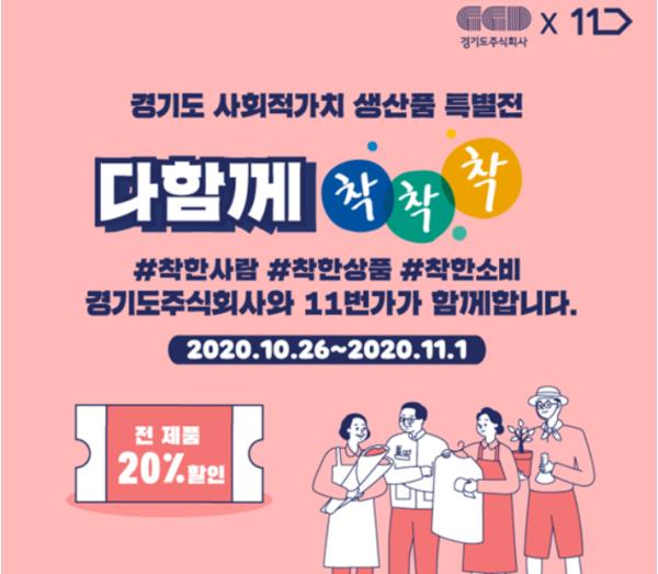 경기도와 경기도주식회사는 온라인 쇼핑몰 11번가와 함께 ‘착착착 11번가 온라인 기획전’을 오는 11월 1일까지 진행한다고 밝혔다.