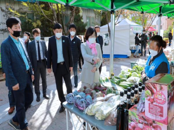 이번 ‘한마당 대축제’에서는 매주 주말 열리는 안성농업인 직거래 주말장터를 지역주민 통행이 많은 공도중~창조고등학교 사이 도시공원 산책로까지 확대하여 운영했다.