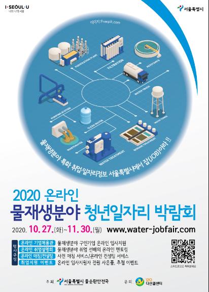 서울시가 토목, 환경 등 물재생 분야에 취업을 희망하는 청년과 기업을 연결해주는 ‘제3회 물재생분야 청년일자리 박람회’를 10.27(화)~11.30(월) 온라인(www.water-jobfair.com)으로 개최한다.