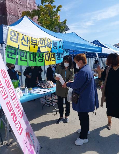 함안군보건소는 지난 26일 ‘임산부의 날 행사’의 일환으로 관내 운영 중인 함모아 인터넷 카페의 프리마켓 행사와 연계하여 농산물 직거래 장터에서 주민대상 대면 캠페인을 실시했다.