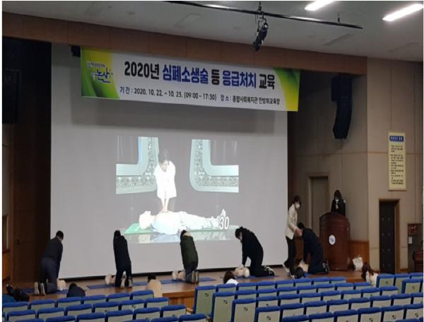 논산시가 법정의무대상자, 교직원, 보건기관 근무자 및 지역주민을 대상으로 한 심폐소생술 응급처치 교육을 완료했다.