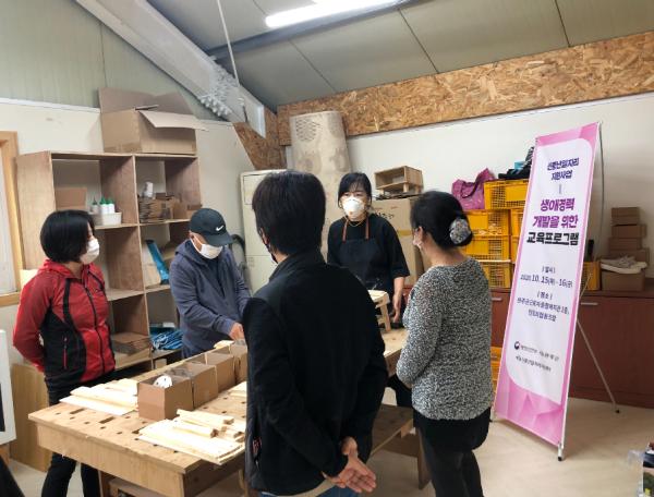 코로나19로 인해 소규모 프로그램을 운영하고 있으며 지난 10월 15일(목)~16일(금)에 진행된 1차 프로그램은 10명의 구직자가 참여하였다. 참여자들 모두 특강과 목공직업체험을 통해 행복한 인생후반부를 위한 준비가 필요하다는데 의견을 모았다.