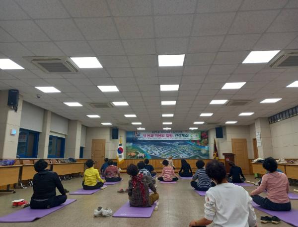 어모면 주민자치위원회는 지난 26일(월) 어모면사무소 2층 회의실에서‘내 몸과 마음의 힐링, 건강체조!’프로그램 개강식을 가졌다.