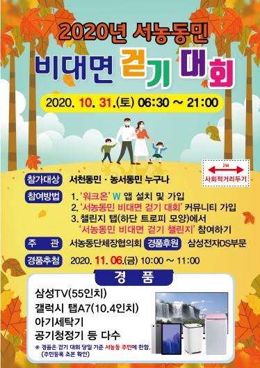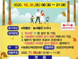 용인시 기흥구 서농동은 서농동단체장협의회에서 코로나19로 지쳐있는 지역 주민의 몸과 마음에 활력을 되찾을 수 있도록 10월 31일 비대면 걷기 행사를 개최한다고 밝혔다.