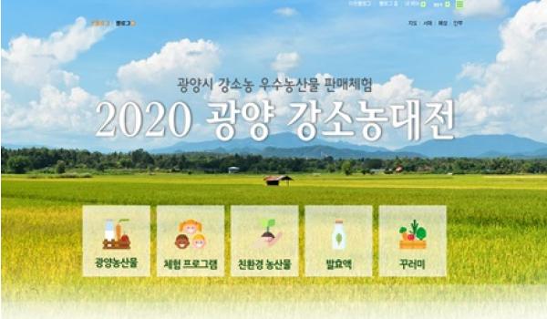 광양시는 2020년 강소농대전이 온라인플랫폼을 통해 오는 29일부터 31일까지 농촌진흥청 및 전라남도농업기술원, 시군센터에서 온라인으로 개최할 계획이라고 밝혔다.