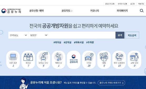 담양군은 주민의 편의와 공공자원의 활용성을 높이기 위해 ‘공유누리’ 서비스를 통한 공공자원 개방을 시작한다.