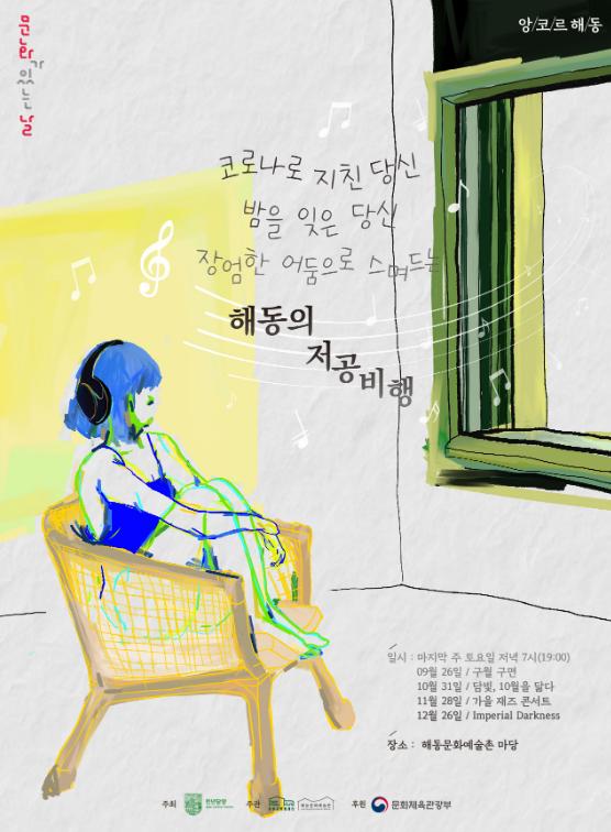 매월 마지막 주 토요일에 개최하는 문화가 있는날 프로그램 ‘앙코르 해동’이 오는 31일 19시 담양군 해동문화예술촌 마당에서 열린다.