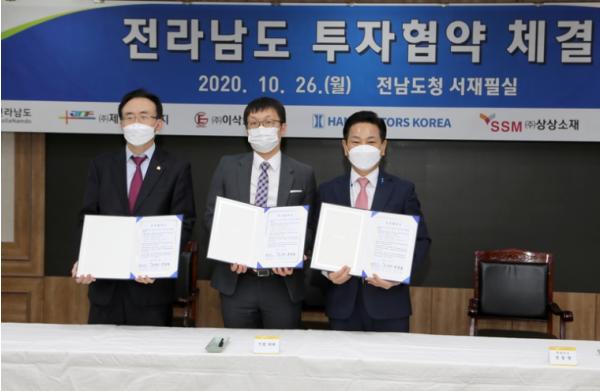 영암군은 10월 26일 전남도청 서재필실에서 김영록 전라남도지사와 전동평 영암군수, 우승희 도의원, 이보라미 도의원, 제이씨에너지 문감사 대표 등이 참석한 가운데 80명의 신규일자리 창출이 전망되는 330억원의 투자계획에 대한 투자협약체결이 성공적으로 진행됐다고 밝혔다.