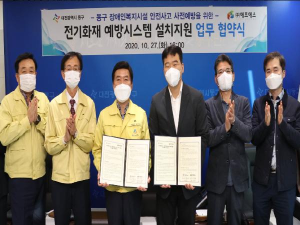 이날 협약식에서 동구와 ㈜에프에스는 안전사고에 취약한 장애인복지시설의 전기 안전사고 예방을 위해 IoT를 기반으로 하는 첨단 전기화재 예방시스템을 구축을 약속했다.