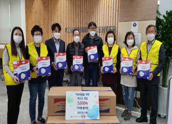 이번에 다사랑 봉사단에서 기부한 3,000매의 마스크는 내손2동 주민센터에 2,000매를 사랑채노인복지관에 1,000매를 각각 배부하여 지역의 어려운 취약계층을 위해 전달할 예정이다.