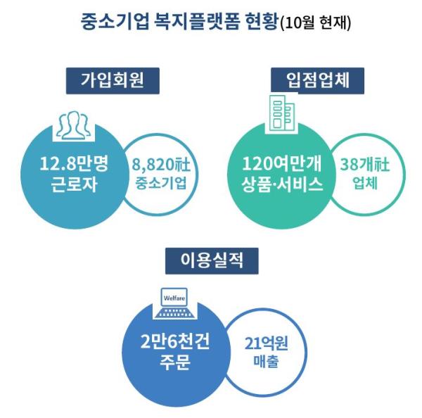 중소벤처기업부와 대한상공회의소는 중소기업 근로자의 복지향상을 위해 지난해 9월 출범한 ‘중소기업 복지플랫폼‘이 출범한 지 1년 만에 회원수 12만명을 돌파했다고 10월 28일 밝혔다.