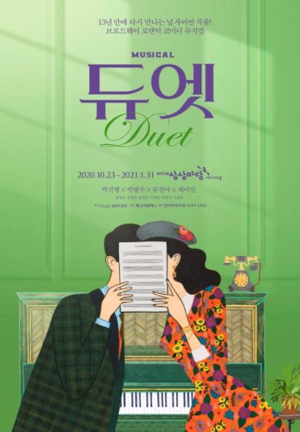 KT&G 상상마당 대치아트홀에서 오는 2021년 1월 31일까지 공연되는 뮤지컬 듀엣은 지속되는 일상에 지쳐있는 관객들에게 큰 웃음과 즐거움을 선사할 것으로 기대된다.